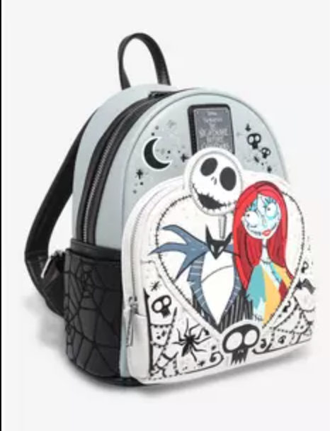 Shaped like a stitched heart, this backpack frames Jack Skellington and Sally in one of their most iconic moments, melding Burton-esque gothic charm with sweet sentiment. It’s exactly the kind of design that’s made for the Loungefly collector who wants something moody and magical.