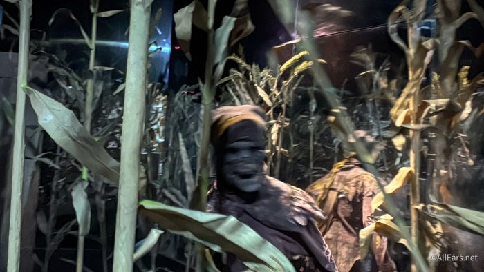 Here, “This isn’t just a haunted house, it’s a cursed harvest. As you make your way through fog-choked cornfields, the air grows heavy and still. But you’re not alone. Twisted scarecrows lurk in the shadows, emerging from the mist-covered cornrows — silent, soulless, and always watching.” And then the scarecrows came, and all sense of peace was GONE (again, that’s totally the point, so well done!).