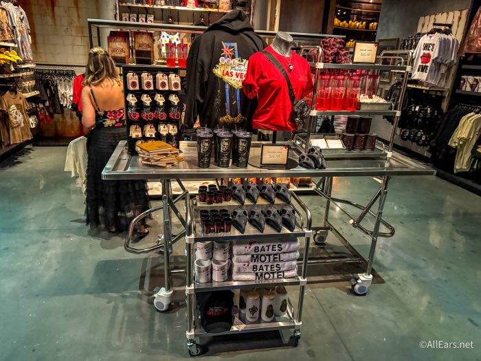 How about merchandise? Don’t worry, there’s plenty of it here, and we LOVED the shop it was in because it was beautifully designed and intentionally high-end. We were told by Universal’s global marketing team that they wanted to go in a different direction with merchandise for this experience as opposed to what you see at Halloween Horror Nights. This is meant to be a higher-end collection and more rooted in story than just the event itself.