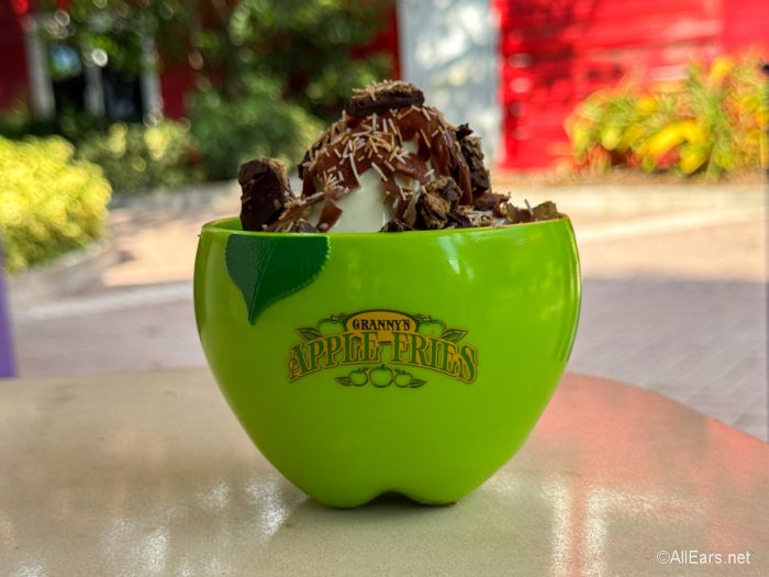 It also comes in a fun souvenir apple bowl, and we have to admit that this is nicer than some of the souvenir cups and bowls we’ve had at Disney World. Granted, this snack is pricey, but the portion size is huge, and it tastes homemade.