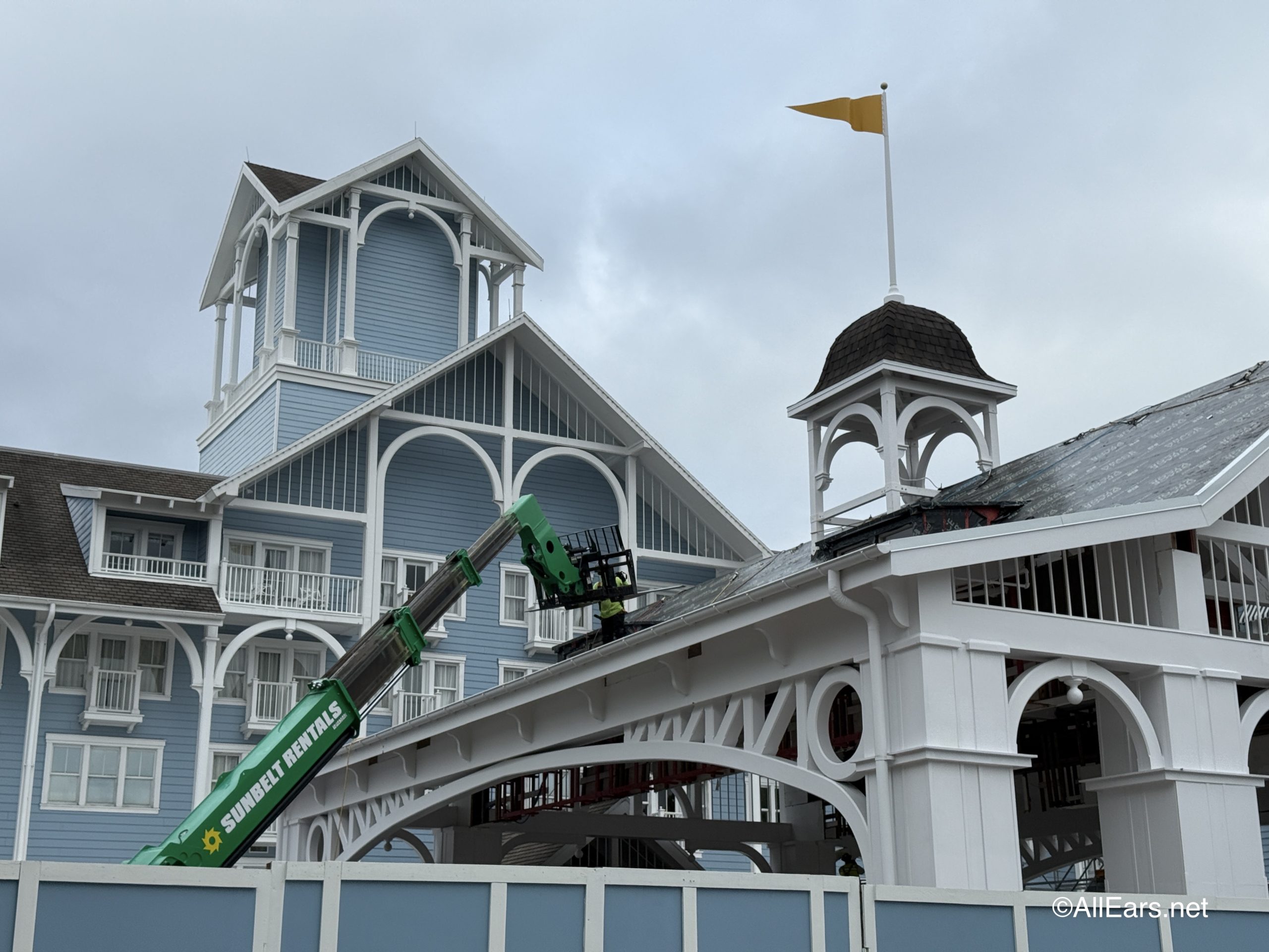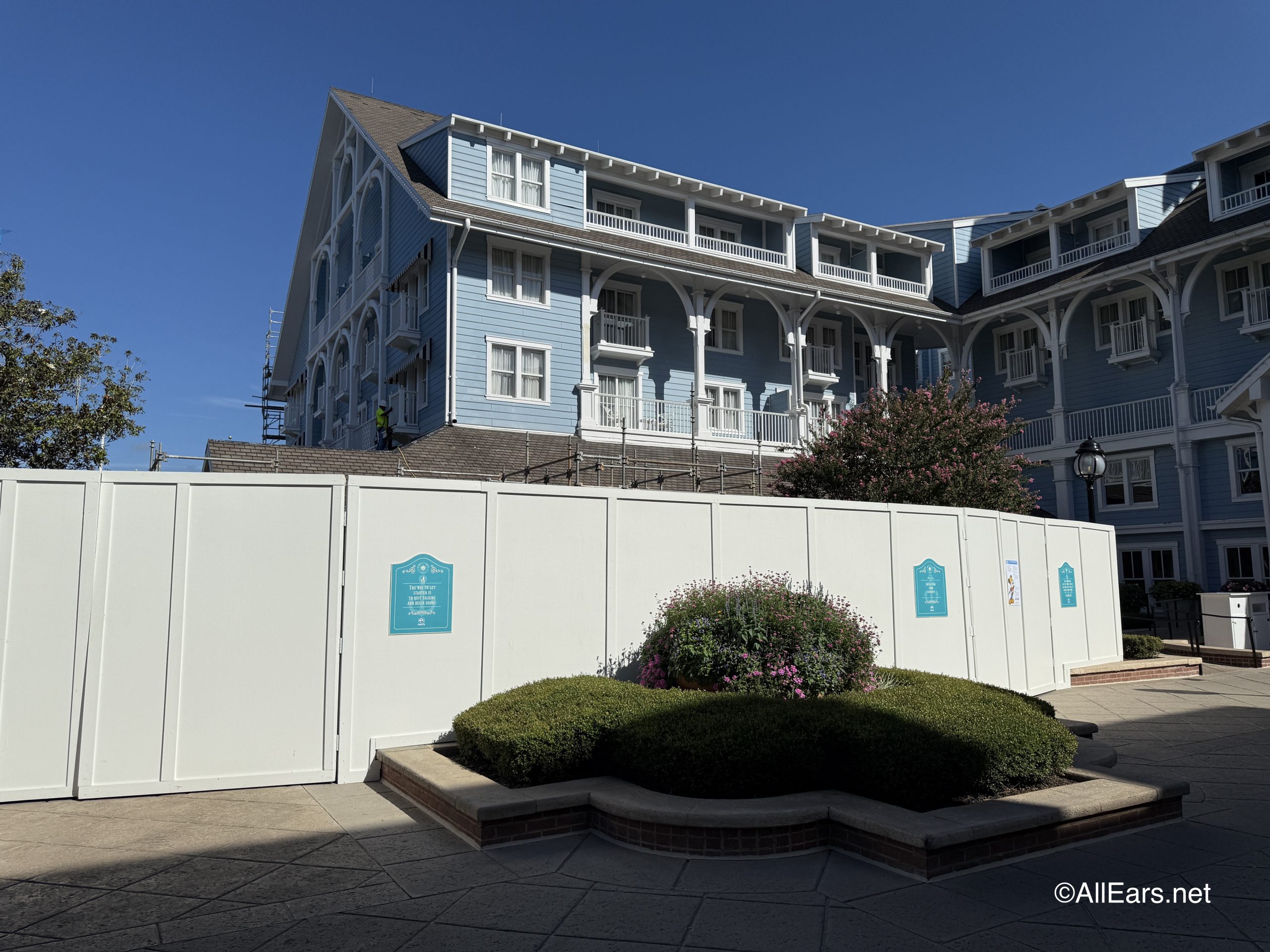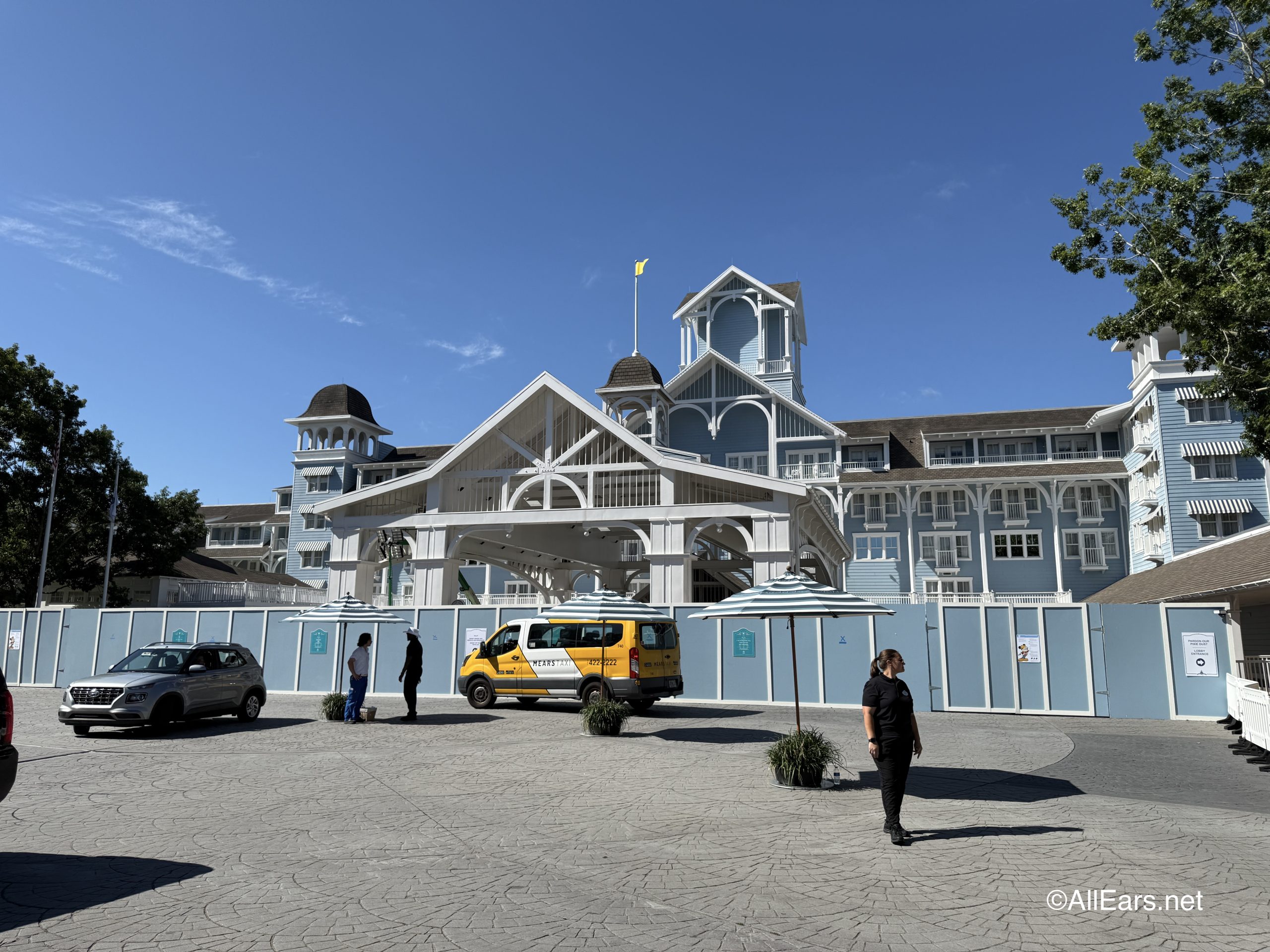 Disney’s Beach Club Resort is undergoing a lengthy routine exterior maintenance through 2027, so we weren’t expecting full completion for a while. However, the port cochere was set to reopen by September 2025.