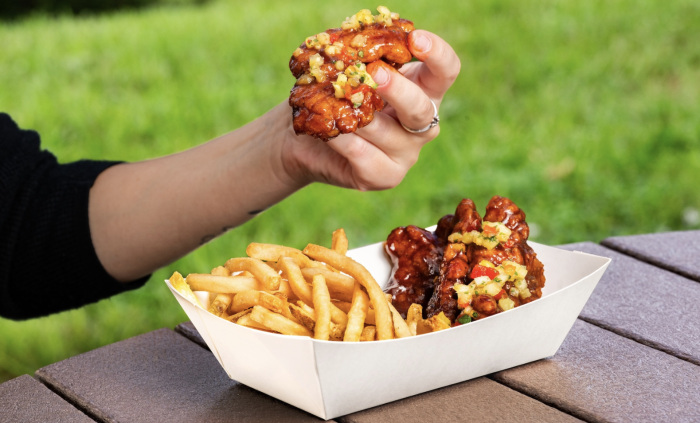 The Jerk BBQ Chicken Strips will bring the island vibes! You can expect a BBQ flavor with a touch of sweetness thanks to the pineapple salsa topping. You can find these at: