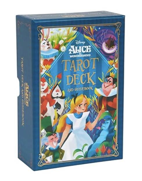 The deck features 78 cards with an Alice in Wonderland twist. You’ll find beautiful illustrations of your favorite characters like Alice, the Cheshire Cat, the White Rabbit, the Mad Hatter, and more, while also being based on classic taro iconography. A guidebook also comes with the deck to explain the meaning of each card.