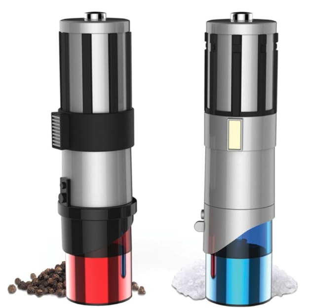 You’ll feel the power of the force while grinding fresh pepper and salt on your yummy food! These are definitely a need not a want for real Star Wars fans.