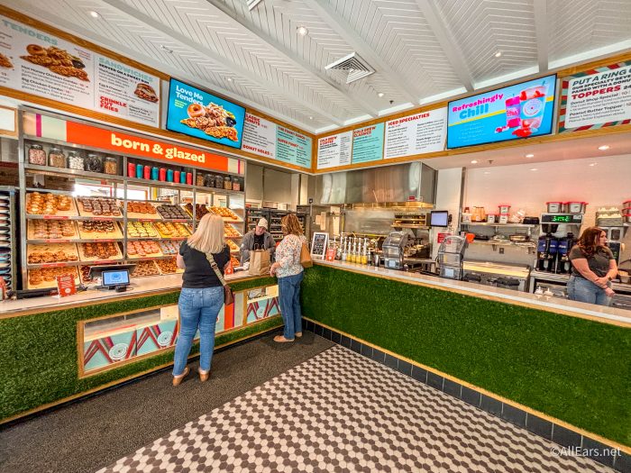When you first walk inside the automatic doors, you will be able to browse the menu and peruse all of the donut flavors. There are a lot of donut options, so take your time browsing! Once you are ready to order, you will place your order at the counter. If you order any donuts, the worker will grab them from the donut wall, while other menu items will need to be picked up after you have paid.