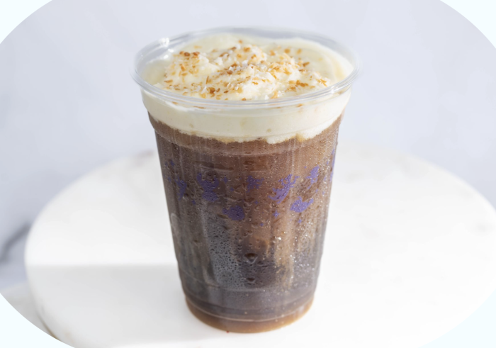 In EPCOT, head to Kringla Bakeri Og Kafe for the Cold Crumb! This cold drink is a Skøl Bread-inspired Cold Brew made with coconut-flavored Joffrey’s Cold Brew Coffee, vanilla custard cold foam, and shredded coconut.