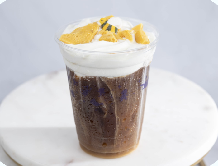 At Golden Oak Outpost, you can try the new Honey Lavender Cold Brew! This coffee will feature Joffrey’s Cold Brew Coffee with honey-lavender cold foam, honeycomb toffee, and a sugar candy piece.