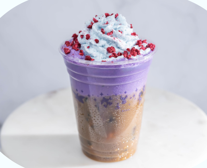 In Animal Kingdom, we previously tried the Ube Cold Brew at Satu’li Canteen in their Cold Brew Flight! Now, you can get the Joffrey’s Cold Brew Coffee with ube sweet cream, butterfly pea tea whipped topping, and freeze-dried raspberries in a full-size. This is personally thrilling!