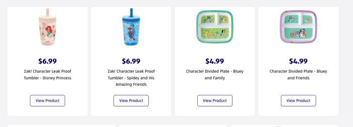 There’s also Divided Plates for Spider-Man and Disney Princesses. Don’t forget to grab the Bluey 2 Piece Flatware to go with the cups and plates.