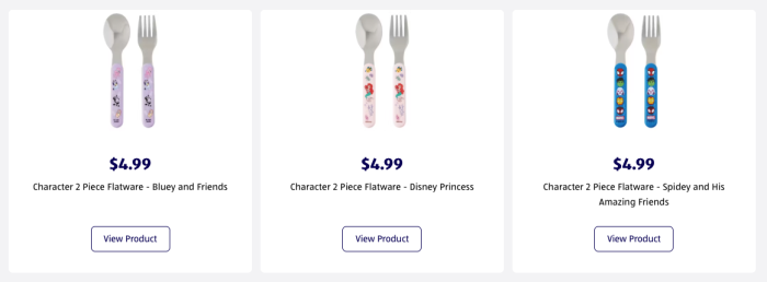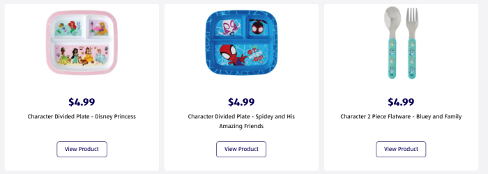 Bluey fans will need the Purple Flatware Set, and there are also Disney Princess and Spider-Man Flatware Sets to match the other divided plates.
