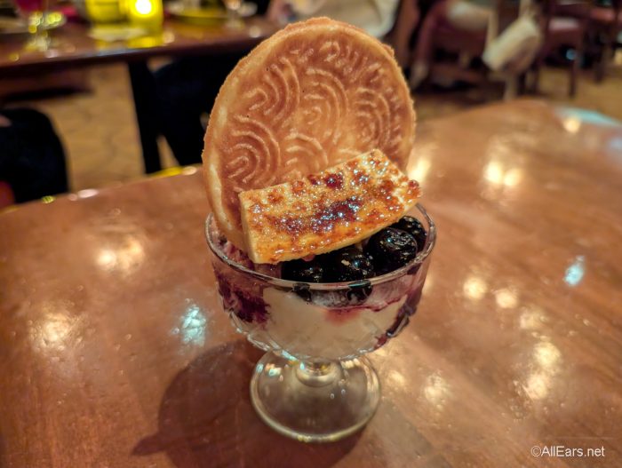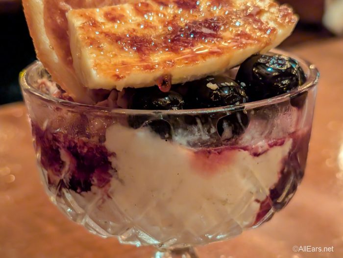 We also tried the plant-based The Wine Cellar’s Banana Split made with Roasted Banana Frozen Dessert, Pizzelle, Bing Cherries, and Chantilly for $13. This was another huge surprise. The flavors of this dessert just POPPED. The banana was caramelized, which really took the flavor up a notch. Then the almond-tuile wafer added a bit of lightness.