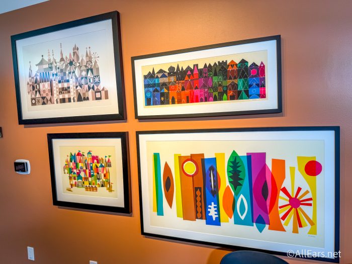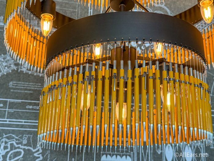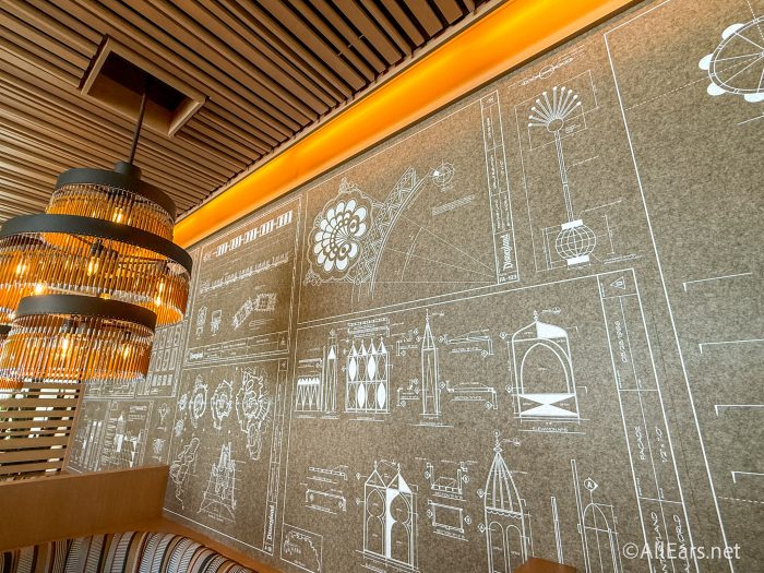 The walls are decorated with artwork and technical concept designs from throughout Disney history. Inside, you’ll find a display of construction documents of iconic projects such as “it’s a small world” and Big Thunder Mountain, which pay homage to the hand-drawn techniques of Imagineers.