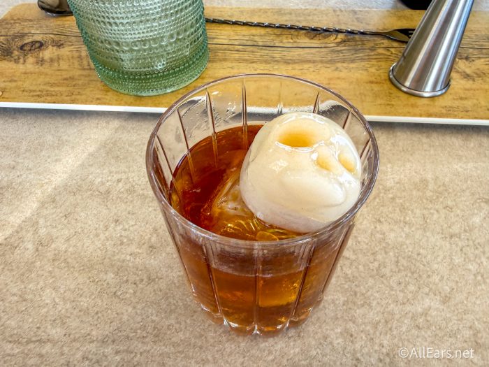 You may notice “book passages and sketches from historic tales that influenced classic Disney stories.” This includes things like the original Alice’s Adventures in Wonderland to Cinderella’s glass slipper. The backdrop that runs along the bar features characters and icons that will resonate with Disney fans and fairytale readers alike. While at Plot Twist, we enjoyed a few cocktails as part of a Mixology Class.