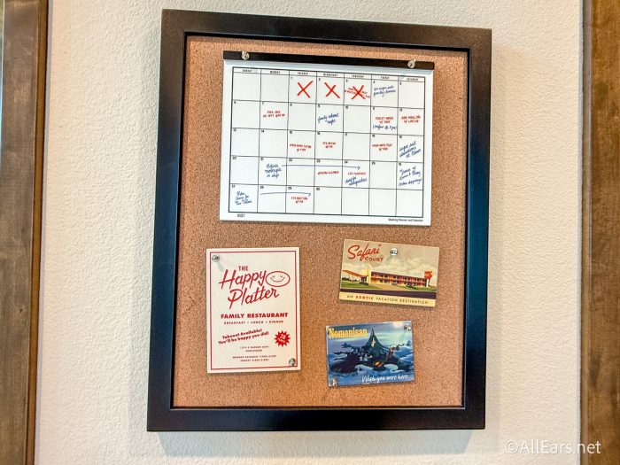 There is also a calendar that features plans such as “Violet Movie w/Tony,” “Dash Math Tutor,” “Jack-Jack Dr. Appt.” and more. The details really add so much to the Parr House.