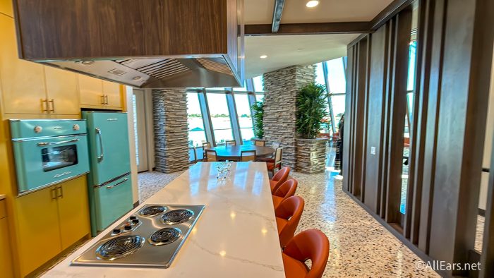 One of our favorite spaces in the house was the kitchen. We still can’t get over the oven and fridge! It really feels like you are stepping into the Incredibles 2 movie, and we love it.