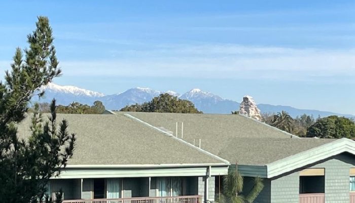 Way off in the distance, the snow-capped Santa Ana Mountain Range is visible. It was January, so of course, the mountain tops were glistening with snow.