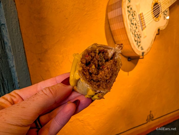 The beef was seasoned well, but the lettuce was a little wilted from the overall texture. The flavor overall reminded us of Taco Bell, but in a good way, and while the seasoning is warm and slightly smoky, it has a very mild spice, meaning it’s good for all palates. It’s also large enough to share, which we appreciated!