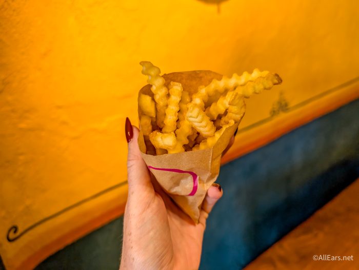 You can also grab the Frites (fries) as a side for 4€. These are hot, crispy, and seasoned, but your basic theme park fry. They’re reliable but unremarkable, and we do feel they work really well as a side with burritos or empanadas.