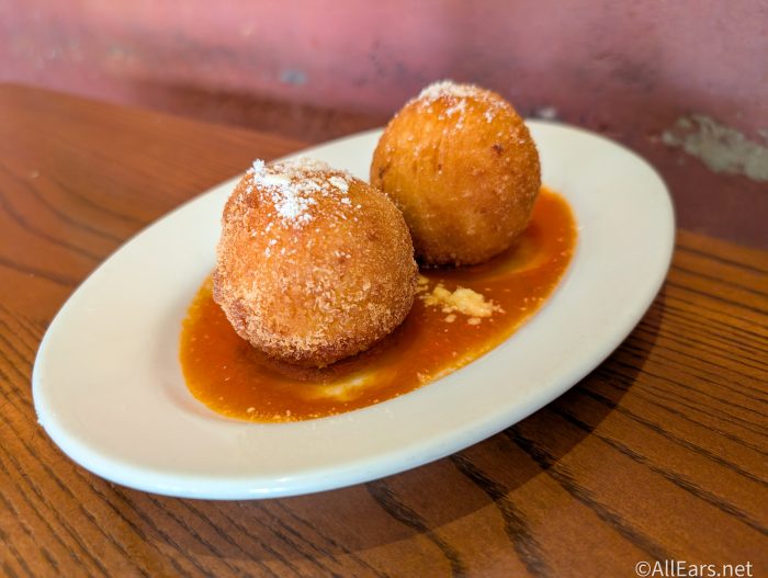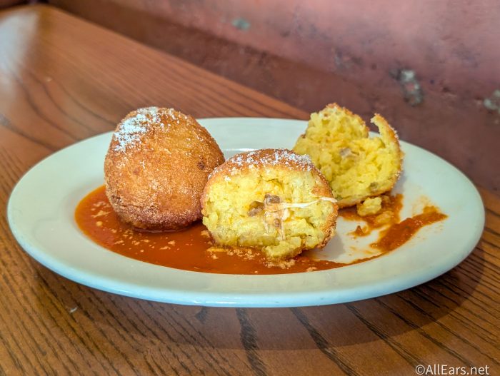 We really set the tone by starting with this dish. They were good — solidly made and nicely fried with that crisp, golden breadcrumb coating. Inside, it was mostly rice, which had a texture and flavor that honestly reminded us a bit of Chicken Rice-A-Roni (and we mean that in the best way.) The filling seemed to have some sausage and cheese, but there just wasn’t quite enough of it to balance out all the rice. Flavor-wise, it leaned mild — more comforting than bold.