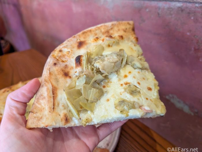 The pizza had a simple combination, but a really well-executed one. As a traditional white pizza, instead of a tomato sauce in between the bread and toppings, this pie relied on olive oil and garlic as the base. That kept the focus on the toppings, especially the artichokes, which brought a mild nuttiness and a great texture to each bite.
