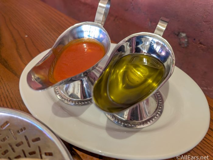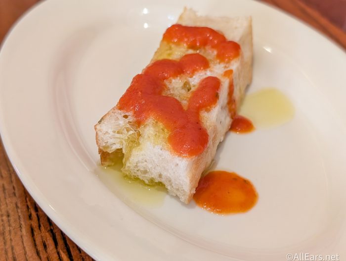 At first, we thought the olive oil had herbs mixed in, but then we realized that the rosemary we were smelling (and tasting) was baked directly into the bread itself. That little twist made us love it even more!