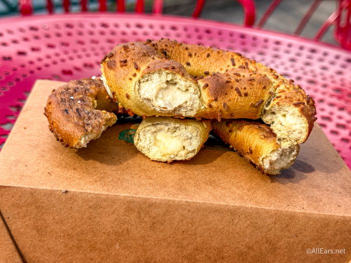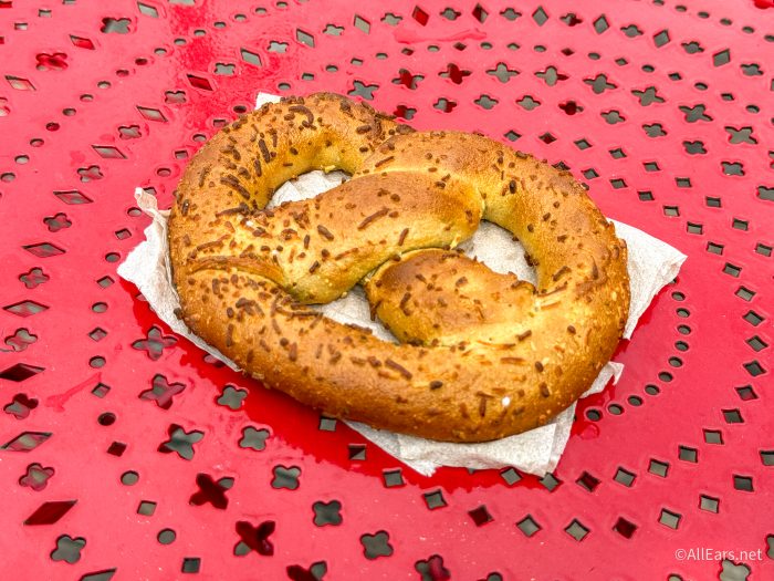 There’s just enough jalapeño here to bring you the spice you want, but not enough to be overpowering. The cheese inside is gooey and warm in the best way, and the pretzel itself is so soft. However, the baked parmesan on top gives it a bit of a crunch. It’s a solid option, and we can’t recommend it enough if you’re looking for something savory, slightly spicy, and unique to this spot!
