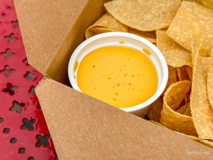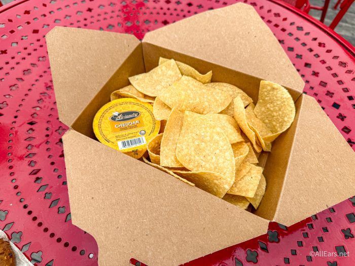 This is a HUGE portion, easily enough for two people to share if they’re both just looking for a snack, and we loved the style of chip. They weren’t too thin or thick, were perfectly crunchy, and were salted well. As for the cheese, this is basically plastic cheese’s cousin, so it’s not the super melty cheese you can pour over your chips; you’ll want to dip your chips instead. It’s not anything super out of this world, but if you enjoy chips and cheese, go for it!