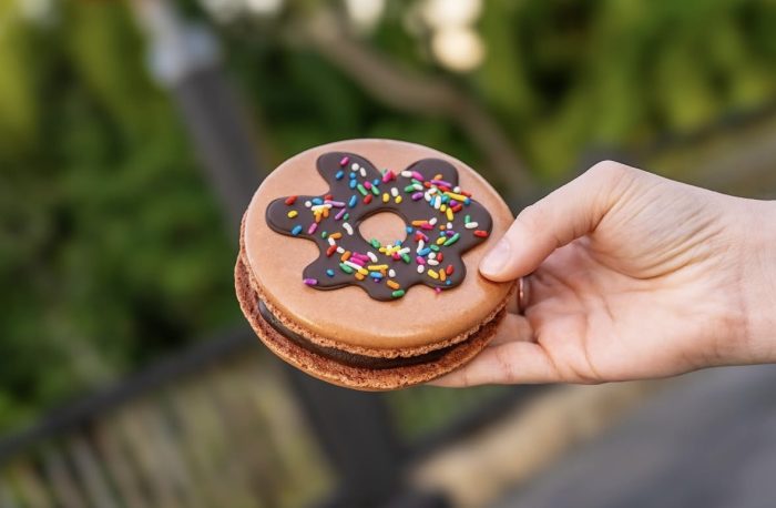 First up, you can grab Clawhauser’s Big Donut Macaron from the Isle of Java. This is a macaron filled with chocolate ganache, strawberry jelly, and covered in chocolate glaze with rainbow sprinkles.