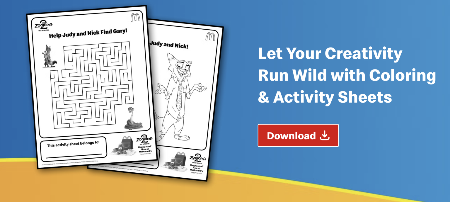 That’s not all the Zootopia 2 fun coming to McDonald’s! You can also grab new coloring and activity sheets from the McDonald’s website, which are FREE.