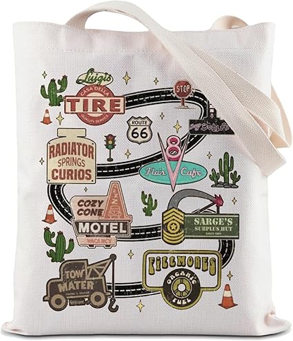 We’re pretty big Cars lovers over here, so of course, we need a bag dedicated to the movies. The bag shows Route 66 with different Radiator Springs locations. Of course, the Cozy Cone MOtel made it on there!