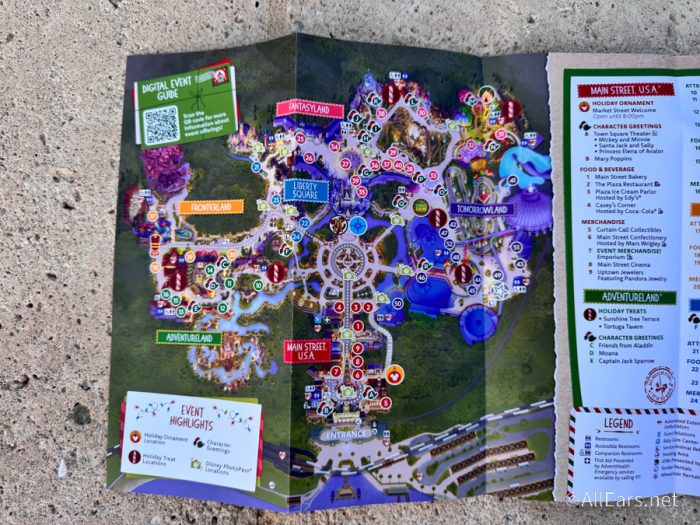 This map is truly a detailed guide on what you can find at this popular nighttime event! You’ll find plenty of in-depth info on entertainment available to you, what kind of treats you can snag and where you’ll be able to find them, what holiday overlays are up and running, and even details on the event-exclusive merch!