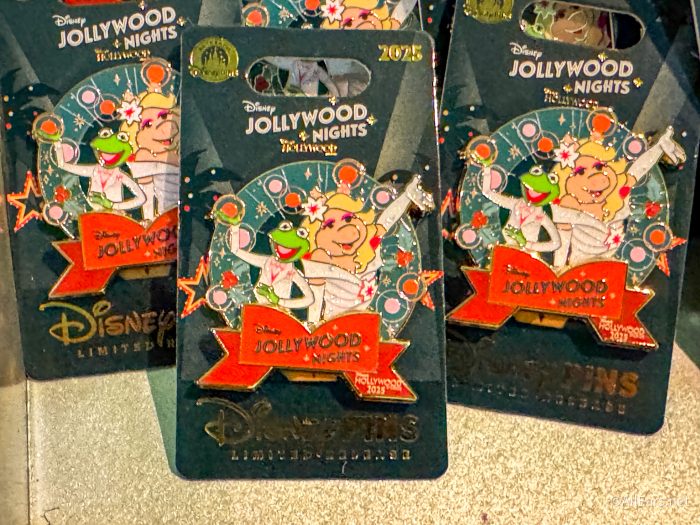 If you’re a pin collector, you’ll want to snag the 2025 Jollywood Nights Pin for $19.99 to remember your night and add it to your collection. Kermit and Miss Piggy are front and center, as they should be.