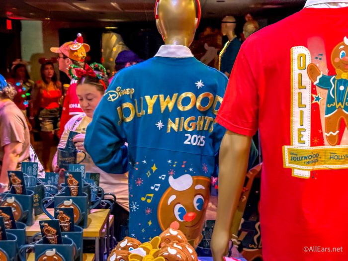We’re super excited about the new merchandise, and we’re taking you with us to get a look at the all-new 2025 Jollywood Nights souvenirs. If there’s anything you want here, you’re going to need to get that special party ticket, because you’ll only be able to get this stuff during the holiday party!