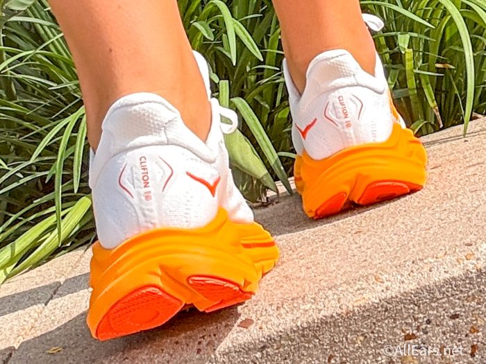 If you plan to spend full park days with little downtime, or you have joint issues, HOKA (Bondi or Clifton, depending on how much cushion you want) is an excellent choice. The extra shock absorption can reduce end-of-day fatigue, which we KNOW we’re prepping ourselves to experience after a long, full day at Disney World. If you prefer a lighter, livelier shoe that still cushions but feels more responsive when walking between attractions On (Cloudmonster, Cloudsurfer, and Cloudrunner options) will likely satisfy you just fine without feeling super bulky.