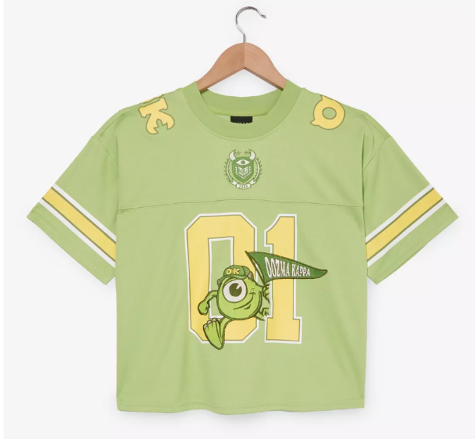 If you’ve noticed how Disney character jerseys are very in right now, this one is a perfect example. The “Mike Oozma Kappa” cropped football-style tee gives the collegiate vibes and bold team graphics.