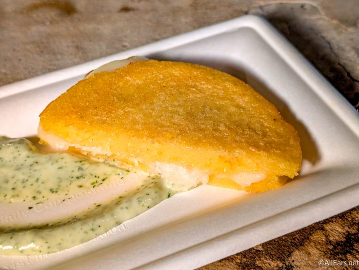 Our next stop is KRNR The Rock Station, where they have several treats. First is the Arepas de Choclo, which are sweet corn cakes with cheese, topped with cilantro aïoli and served with jícama slaw for $4.99.