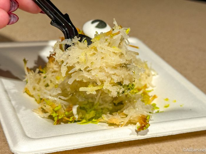 This is essentially a conglomeration of coconut shavings with some butterscotch chips and extra sugary-ness mixed in. The presentation is fun and kind of wonky, but it definitely has that coconut texture and flavor, so avoid it if you’re not a fan of that ingredient. Overall, we really enjoyed it!
