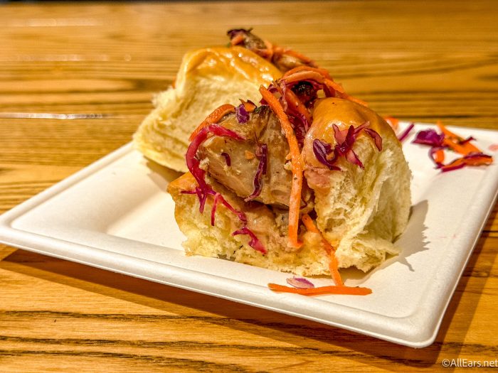 These were a standout for us at Backlot Express. The chicken thighs are covered in sauce, and it has a sweet-and-spicy thing going for it. They’re meaty, juicy, and delicious, and we love the crunch from the Asian slaw.