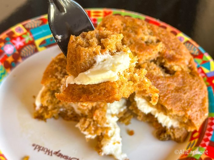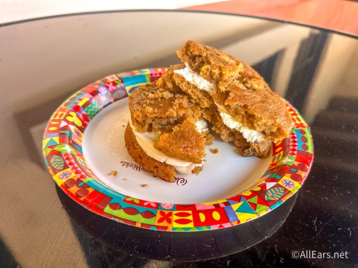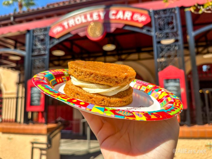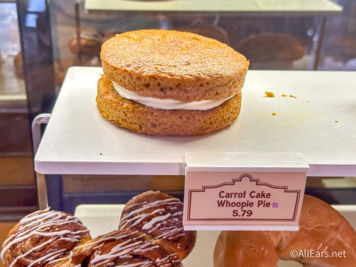 Not only can you get typical Starbucks menu items at The Trolley Car Café, but Disney also offers select, exclusive menu items here, as well. One of these specialty treats is what I have to get every time at this park — the Carrot Cake Whoopie Pie.
