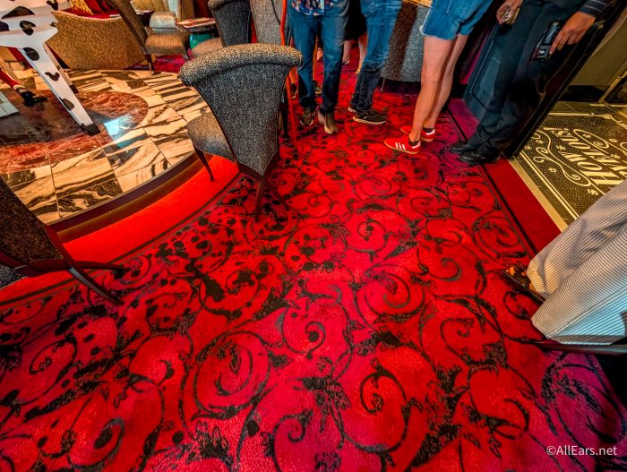 De Vil’s is a new piano lounge dedicated to the puppy-obsessed villain, Cruella De Vil. This is the first of its kind, and you won’t find this lounge on any other Disney cruise ship. The lounge is exclusive to adults and has a bold aesthetic.