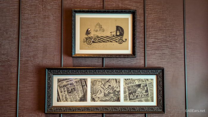 Upon entering, you will spot a floor mosaic with Cruella De Vil’s infamous catchphrase: “How Marvelous!” The catchphrase is even surrounded by paw prints.