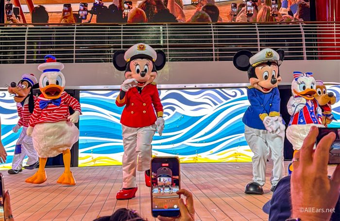 The fun wasn’t over though, because back on board, it was time for the Sailaway Party, which gave us a bit of a glimpse into what we’d be seeing on board. We got to see the storytellers that you’ll often find in the Grand Hall, some of our favorite Disney pals, and of course, lots of music to dance to.