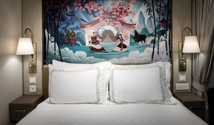 The ship’s heroic theming — which is inspired by the “by the dynamic duality of every great Disney story,” according to the ship’s designers — comes to life in each stateroom in the form of custom artwork depicting the epic journeys of famous Disney legends. These include Hercules…