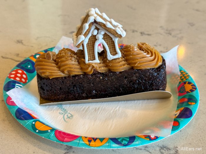 Well, we actually just found a gingerbread house at Disney’s Grand Floridian…but there’s a catch. It’s tiny, and it’s sitting on top of a snack, but you know what? We’ll take it. So let’s talk about the Gingerbread Brownie at Gasparilla Island Grill.