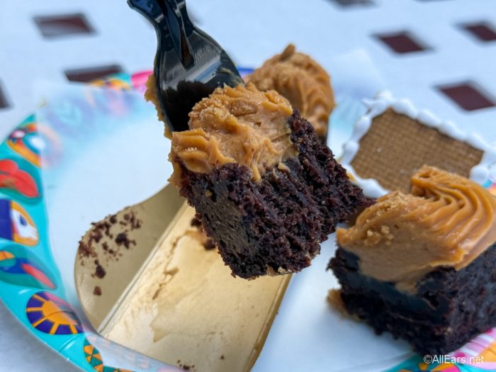 The frosting also had a hint of spice to it, but again, it doesn’t say “gingerbread.” The brownie, though is dense and thick and falls on the fudgy spectrum of brownie types. The only real gingerbread flavor comes from the house (and we almost regretted eating it). But it’s way better than those gingerbread shingles you can buy in the lobby when the big gingerbread house is up.