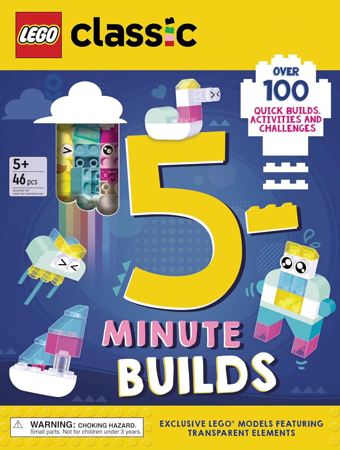 Take a look at this LEGO Classic 5-Minute Builds Book! The book displays over 100 great LEGO build ideas and creative challenges in this ultimate 5-minute activity book featuring transparent elements!