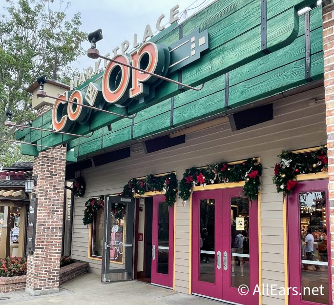 Marketplace Co-Op is located inside the Marketplace section of Disney Springs. Here, you’ll find over 20 venues for shopping and dining, including Rainforest Café, World of Disney, Once Upon a Toy, Disney’s Days of Christmas, and of course, Marketplace Co-Op, among many more.