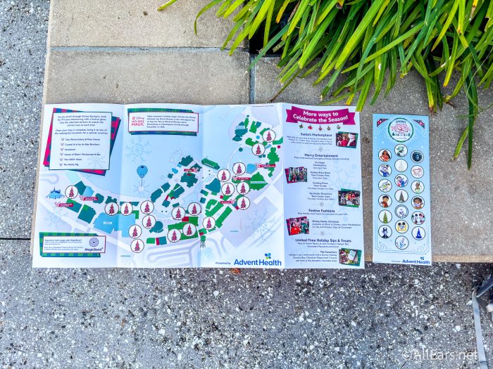 The complimentary map features a sticker sheet and a map with all the tree locations. As you make your way around Disney Springs, you can simply put the sticker in the right location.