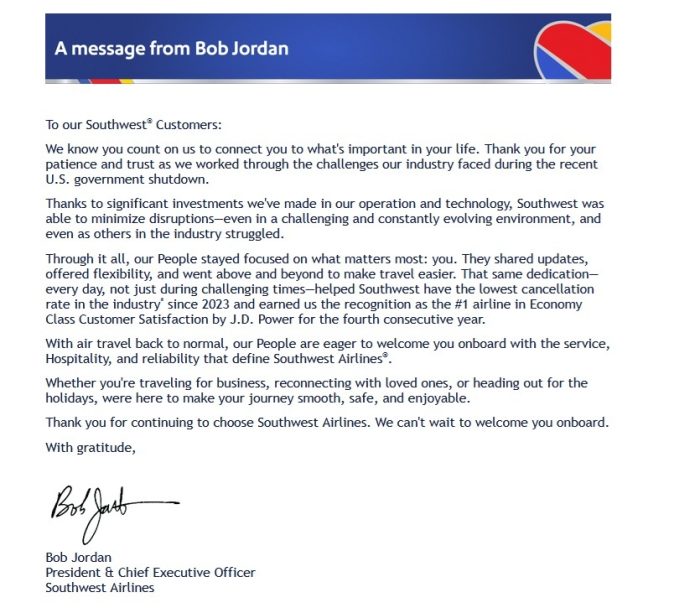 Southwest Airlines also released a statement thanking passengers for their continued patience and how they’re ready to welcome everyone back on board. They’re aiming to make the journey “smooth, safe, and enjoyable,” and they pride themselves on having the lowest cancellation rate in the industry since 2023.