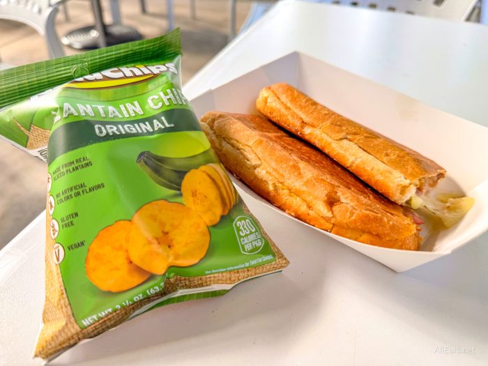 First up, we grabbed the Cuban Sandwich for $12.99. This sandwich features classically-pressed roasted pulled pork, sliced ham, Swiss, pickles, and mustard served with plantain chips.